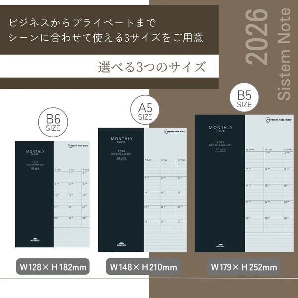 Plan with clarity and ease using this functional, stylish calendar from Raymay. The B6-sized format features a full-month block layout, making it ideal for both business and personal use.